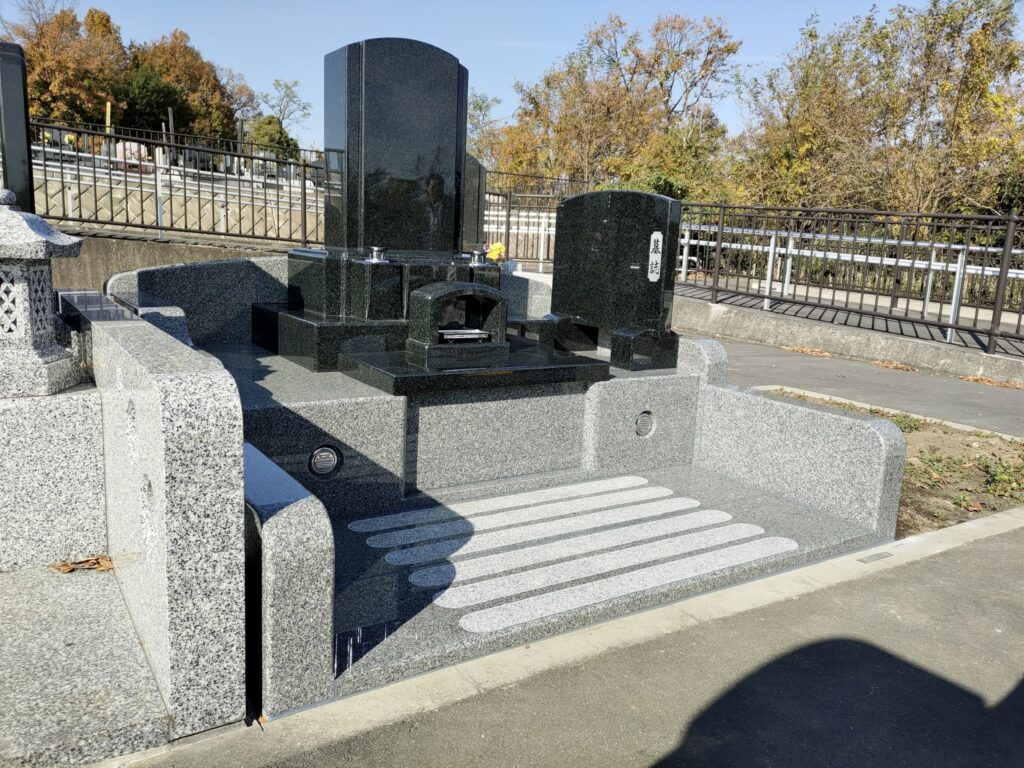 素材の性質に拘ったインド産アーバングレーの外柵にインド産Y-2の和洋式石塔。