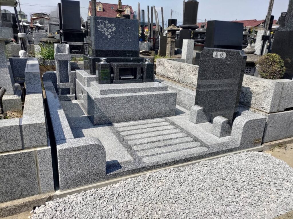 朽ちていた既存の大谷石の外柵から、インド産M-10の石縁堂オリジナル洋式石塔に中国産湖南623の外柵。